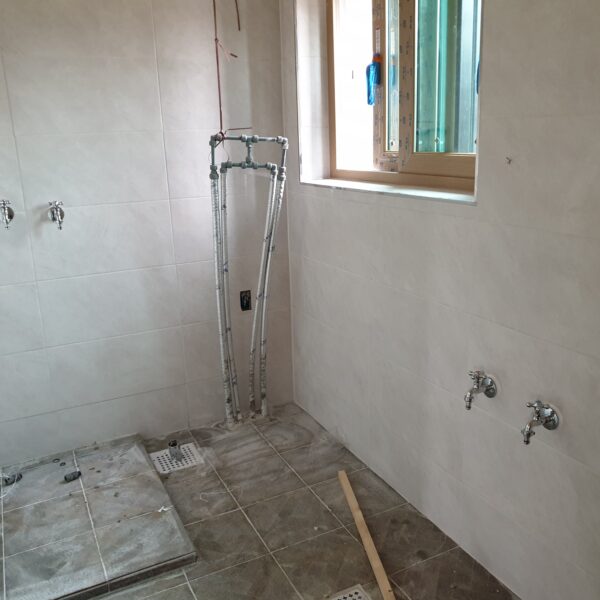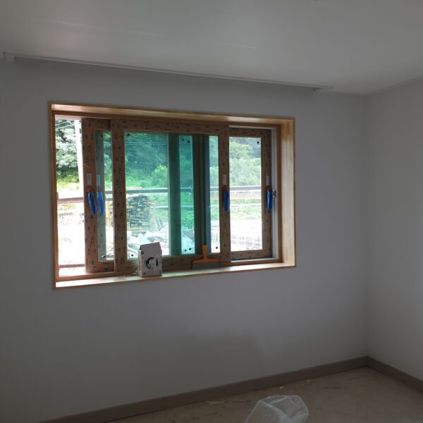 전원주택-실내 목잡업이 마무리되고 타일과 도배, 장판을 시공하고 있습니다.