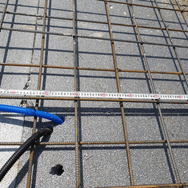 지붕철근 배근시 줄자를 이용해 도면에 표시되어있는 간격으로 시공되었는지 확인해줍니다.